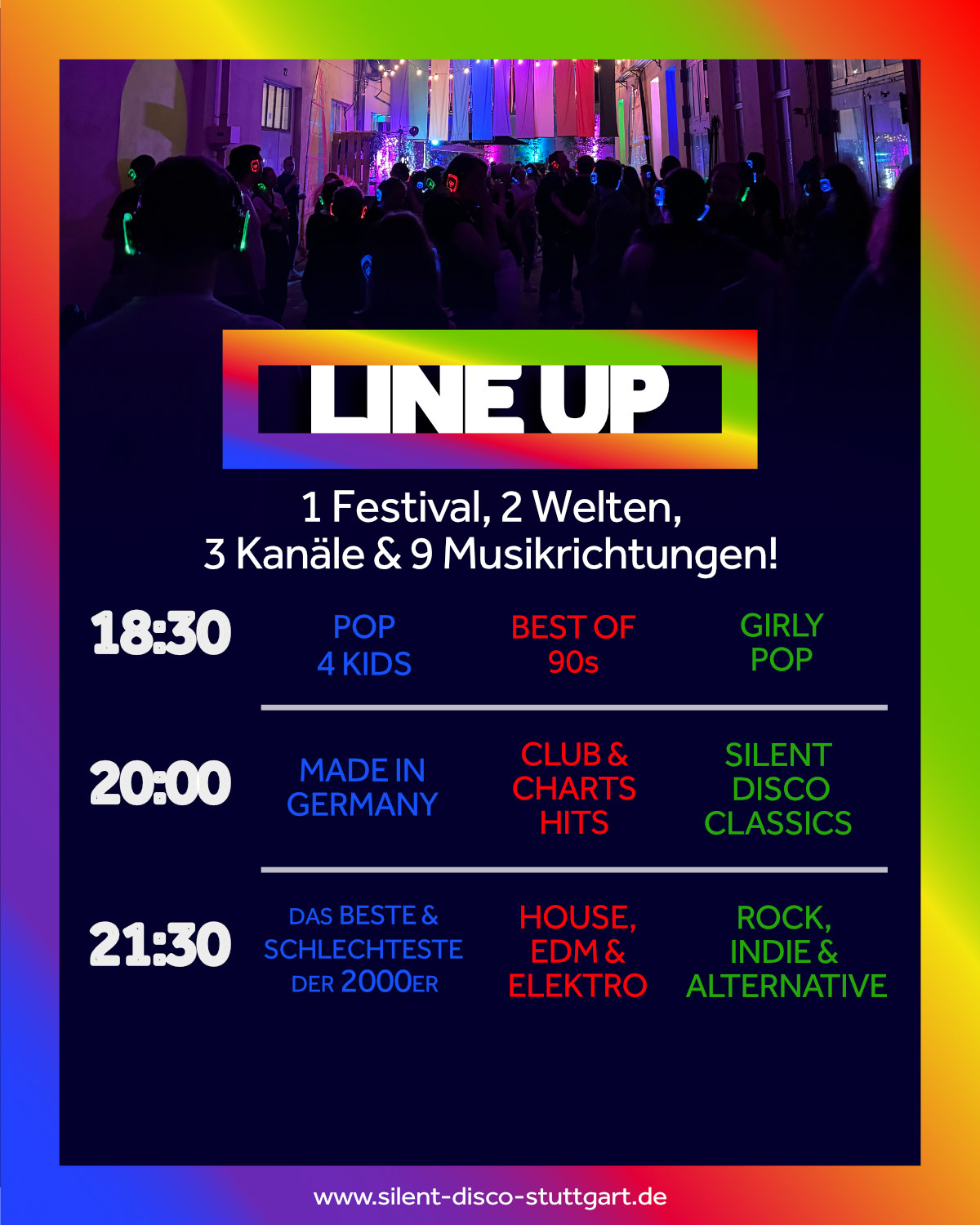 Am Samstag, dem 06. Juni 2026, verwandelt sich das Hi.Francky im Ludwigsburger Areal wieder in ein buntes Meer aus Beats, LED-Farben und glücklichen Gesichtern: die Silent Disco Stuttgart lädt zum nächsten "Silent Disco Festival of Music" ein!